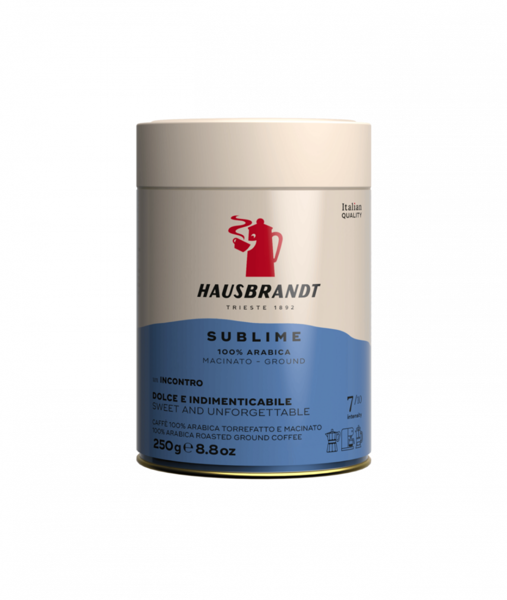 Hausbrandt Sublime 100% Arabica Macinato — вишукана кава для кавоварки Moka. Квітковий аромат з нюансами меду та сухофруктів у поєднанні з м’яким смаком і легкою кислинкою створює неповторну кавову мить.