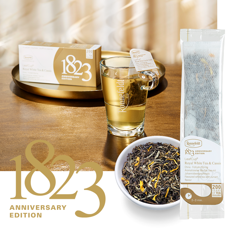 Ronnefeldt LeafCup® Royal White & Cassis – вишуканий білий чай із Юньнані, доповнений витонченим смаком чорної смородини.